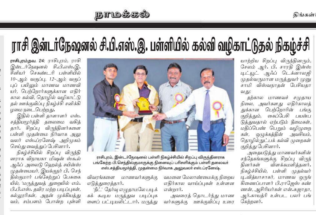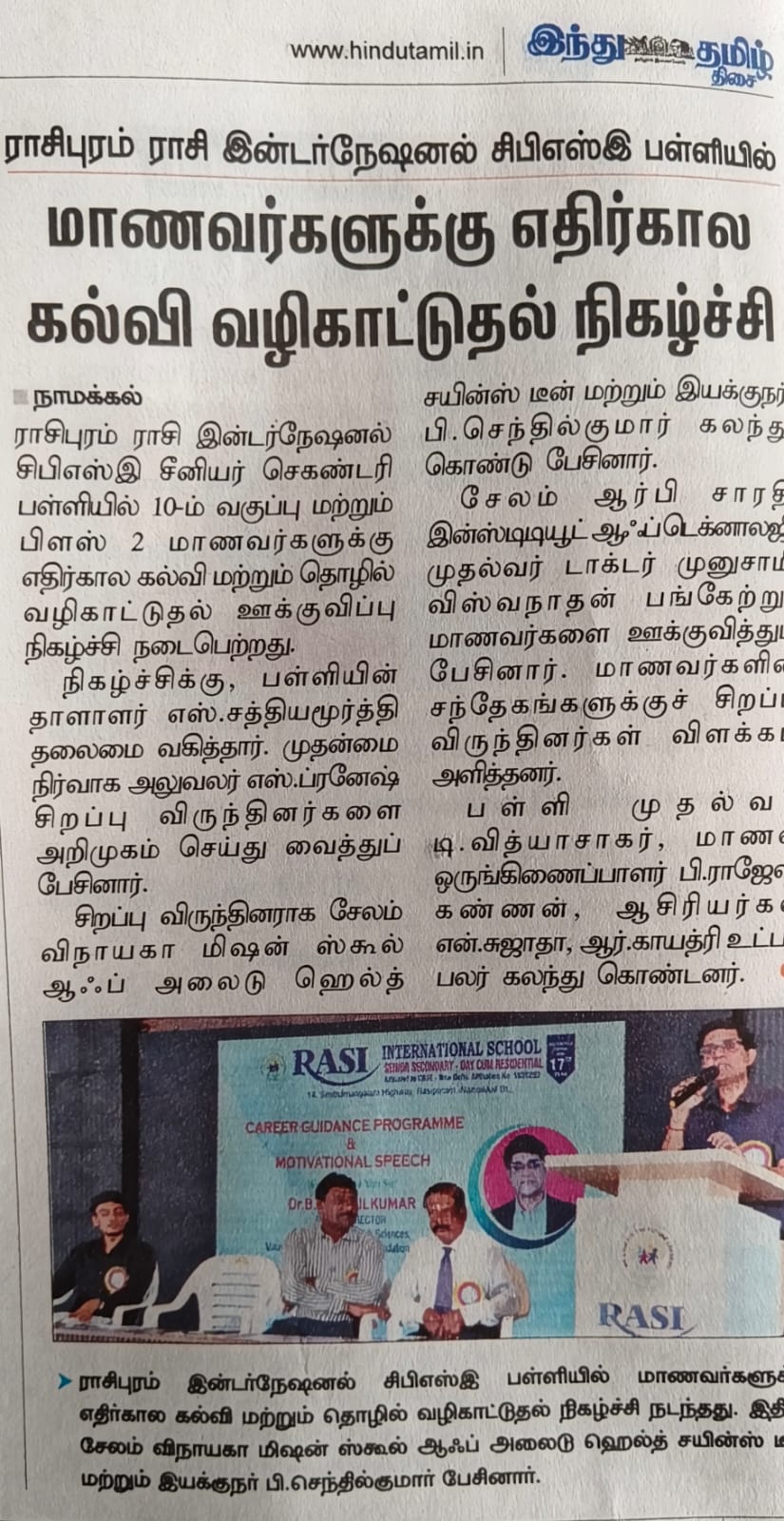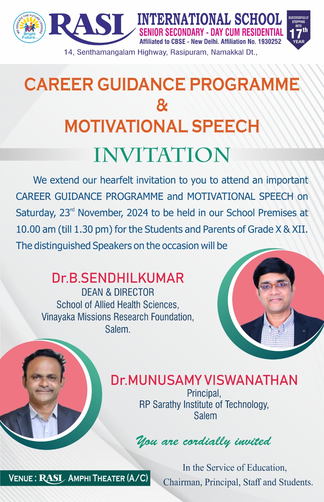 Career Guidance Program and Motivational Talk at Rasi International School ,Rasipuram as Chiefguest
