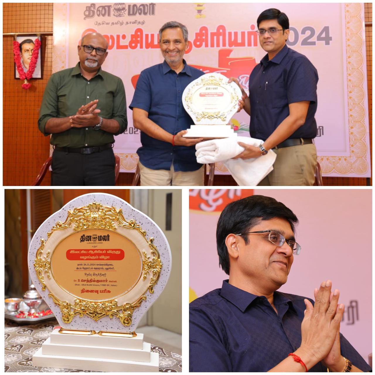Dean received the "Eminent Allied Health Sciences Institute in Tamilnadu"for 2022 for School of Allied Health Sciences College from Honourable Dr.Tamilisai Soundarajan,Governor of Telangana & lt.Governor of Pudhucherry organized by Vikatan Groups.