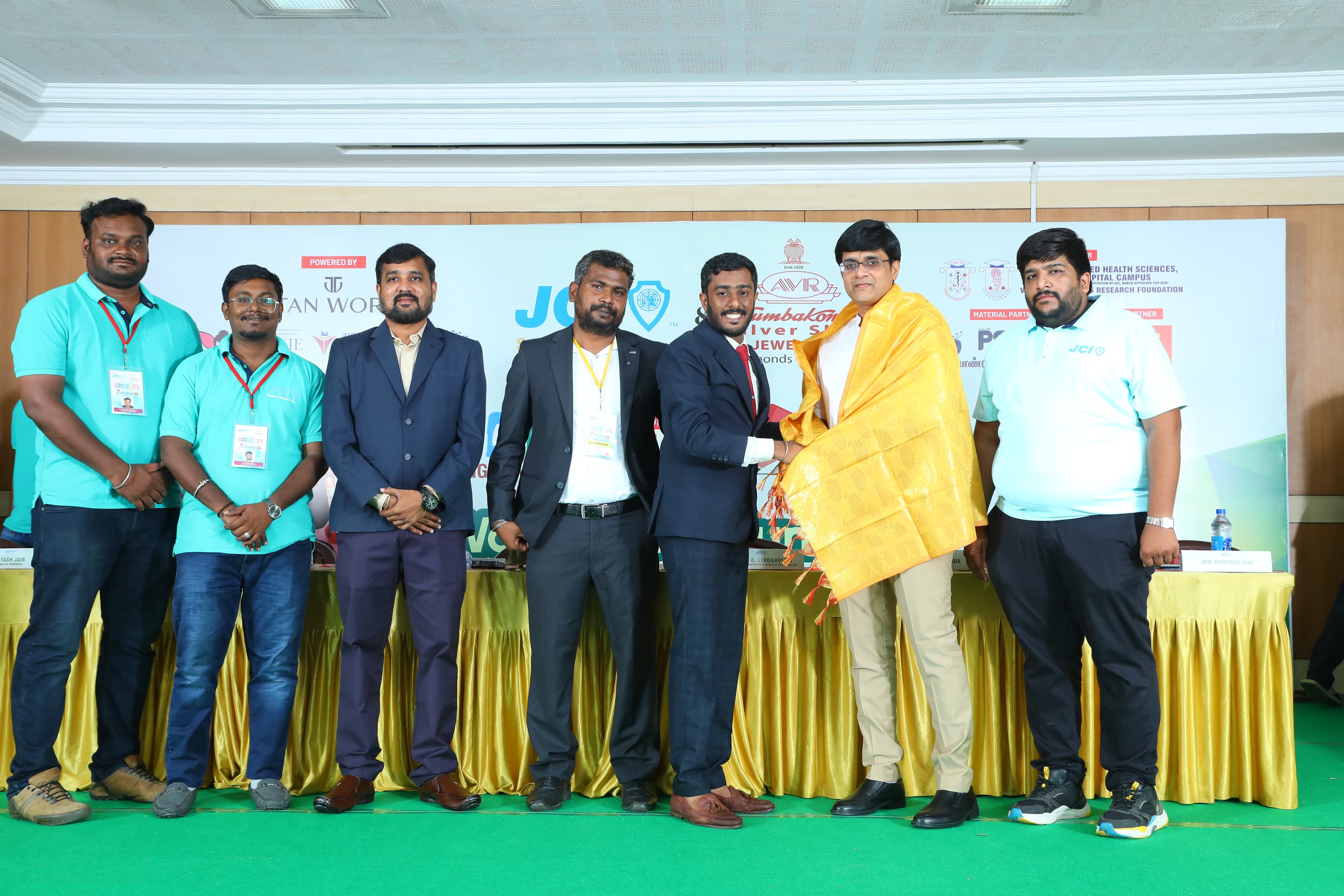 Prof.Dr.B.Sendilkumar has been awarded as the “Iconic Leadership in Higher education" for his commendable Leadership in the upgradation of School of Allied Health Sciences, VMRF-DU at the New Normal Education Summit and Leadership Summit and Awards 2022.