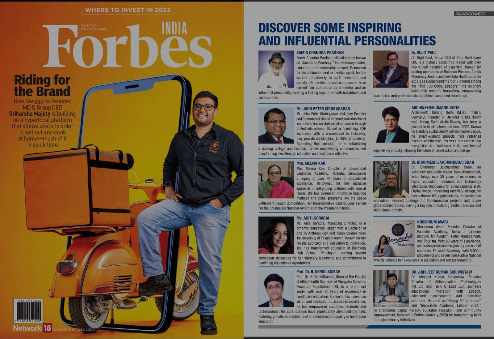Prof.Dr.B.Sendilkumar is featured in the Forbes India magazine January issue as an "Inspiring and Influential Personality".