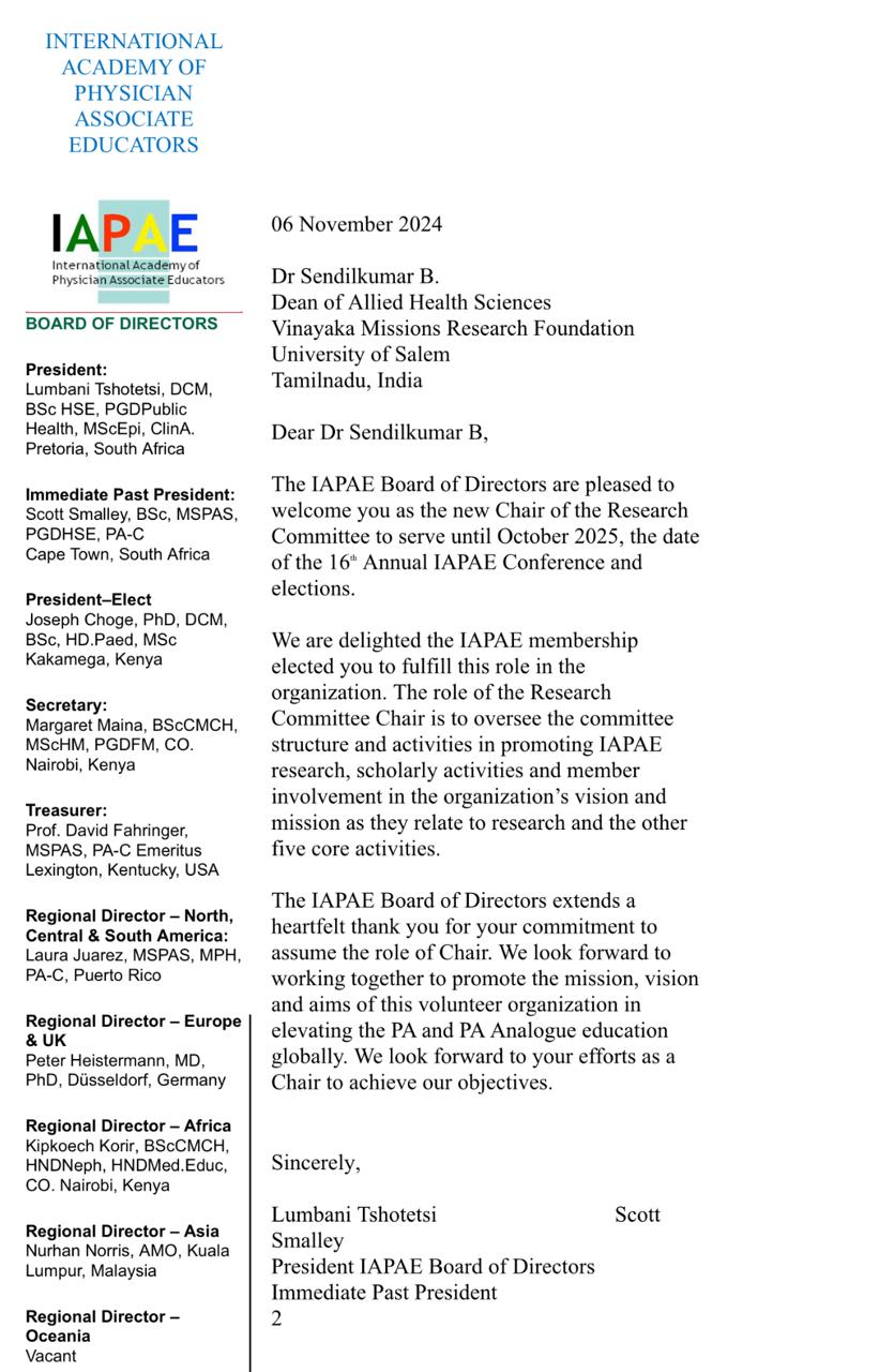 School of Allied Health Sciences, VMRF-DU has received the "Katral Awards-Best in Allied Health Sciences"from NEWS 18 and this is the second consecutive year we are receiving it for our continual and sustained Progress under my leadership.