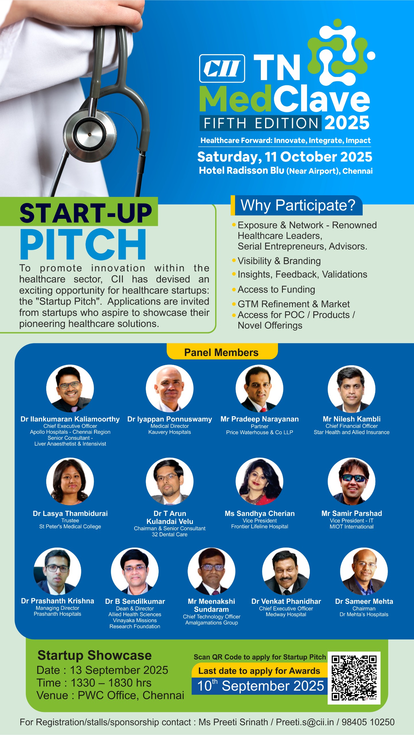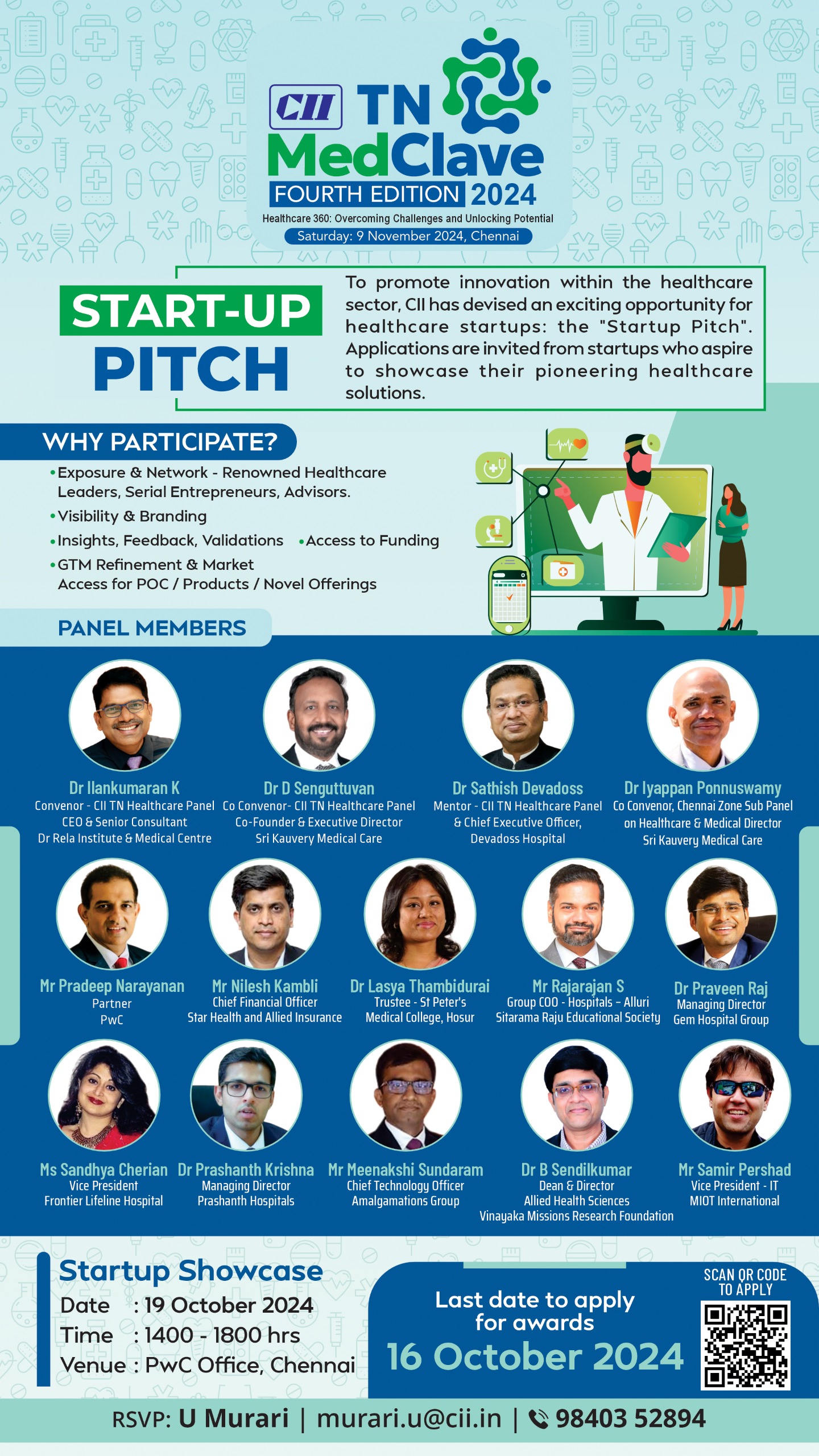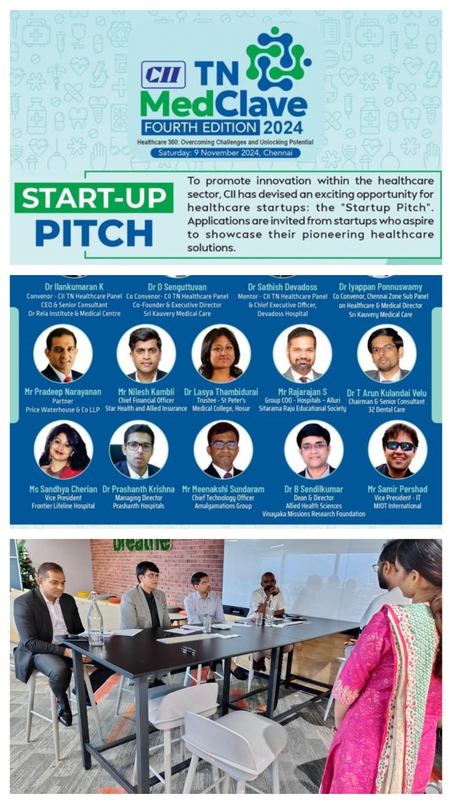 It was a great experience to have served as a panelist at the Startup pitch event TN Medclave 2024 organized by CII, held on 19th October where I evaluated pitches from 15 innovative startups. As a judge, I provided expert feedback on business models, market potential, and scalability, while assessing presentation skills, passion, and problem-solving abilities. Collaborating with fellow judges, we selected winners who demonstrated exceptional potential. This experience offered valuable insights into cutting-edge solutions, startup ecosystem trends, and enhanced my evaluation skills. I was honored to support entrepreneurial innovation, share industry expertise, and contribute to the growth of the startup community.